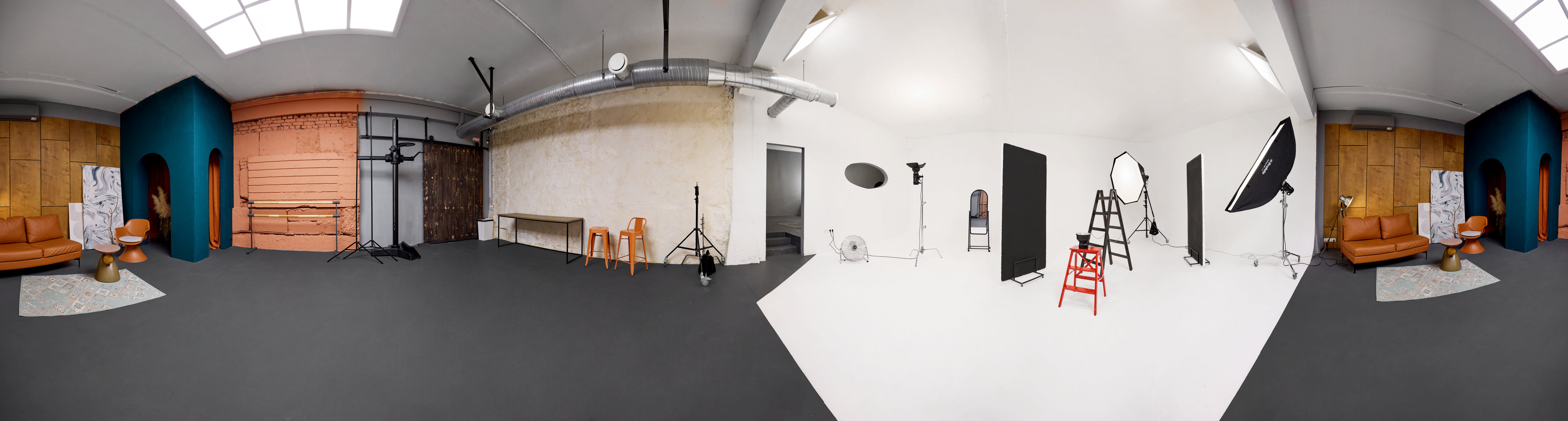 Зал с угловой циклорамой 8,5 x 6 м включает в себя отдельную гримерку 30 м², стильную лофт-декорацию, штатив-колонну Foba, стильные кресла и торшеры. Интерьер и освещение могут отличаться от фото. НЕ ПОДХОДИТ ДЛЯ ЗАПИСИ ЗВУКА.
